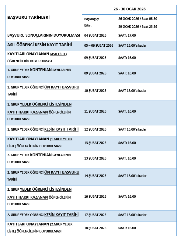 | Benzerlik Oranı ve İntihal Raporu Talep Tarihleri | 16.12.2025 - 09.01.2026 |
